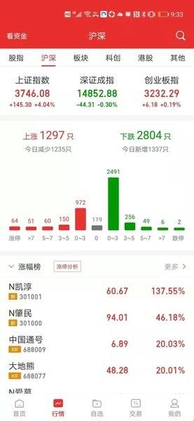 2、点击行情,你可以查看股市行情。