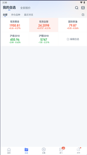 2、自选界面多为你你所持的仓种,还支持对最近的浏览查看。