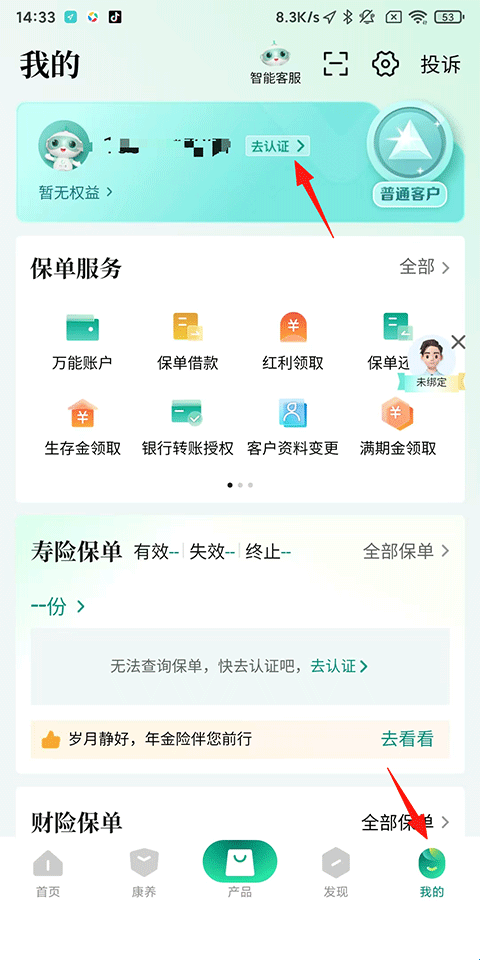 1、打开中国人寿寿险APP,点击我的-去认证;