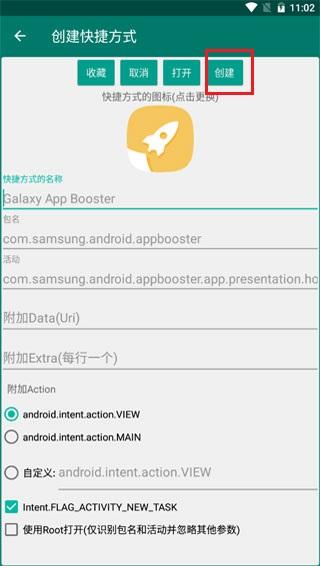 2、点击想要创建的图标软件,我们现在要的就是“Galaxy App Booster”,点击按钮“活动列表”