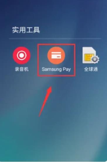 1、首先需要打开手机桌面的实用工具界面,然后点来击samsung pay的选项。