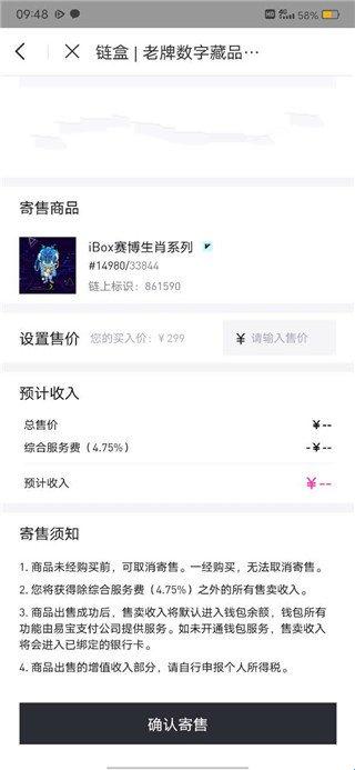 4、进入此界面后填好售价然后点击下方的确认寄售即可。