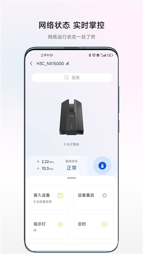 3、实时监控:app可以实时监控路由器的运行状态,包括网络连接状态、设备连接状态、网速监控等,用户可以随时了解网络状况。