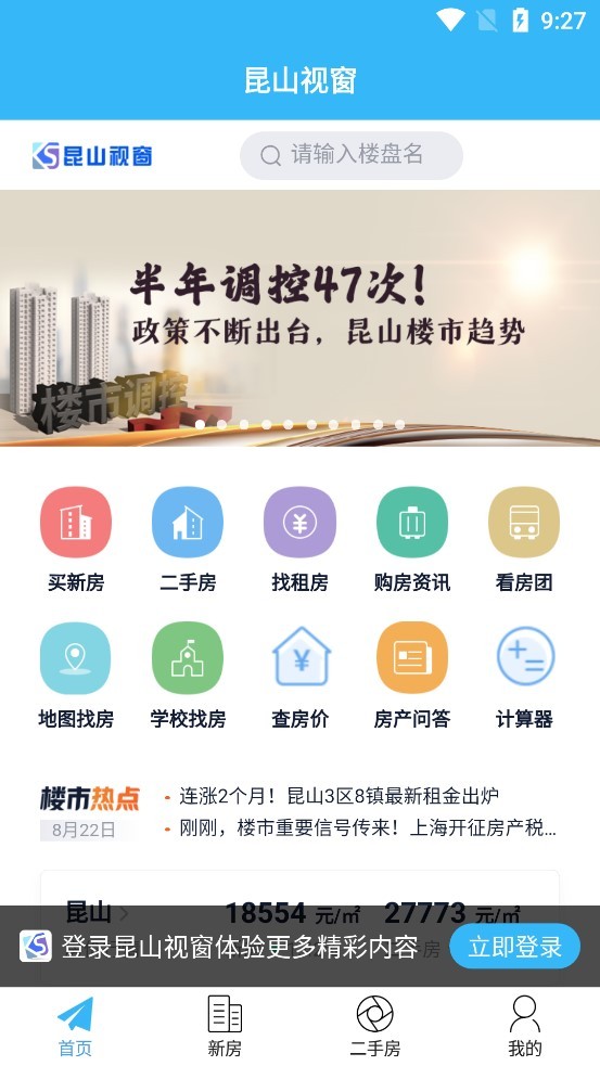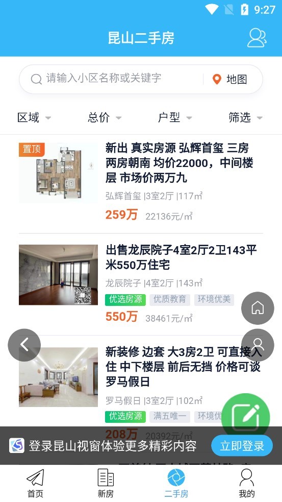 2、登录之后我们在首页就可以看到关于昆山的房产信息;