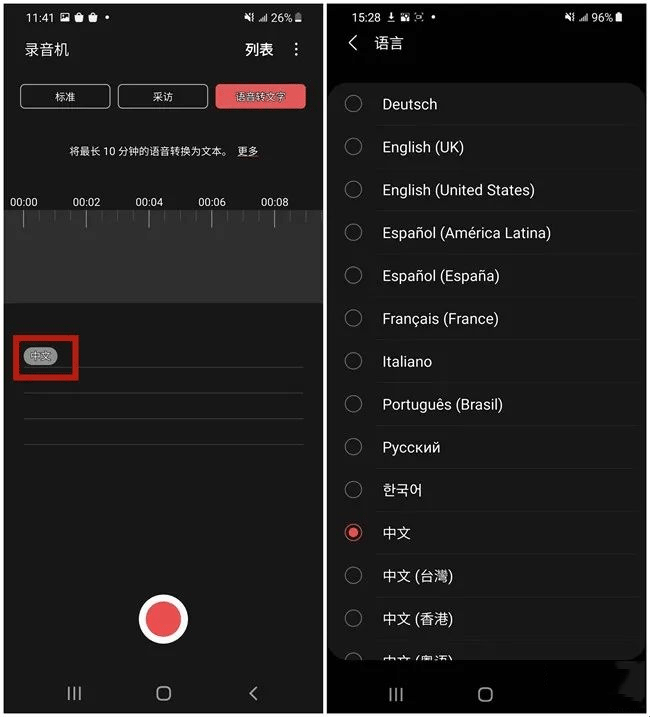 5、而值得一提的是,「语音转文字」功能,支持着15个国家或地区的语言,比如英语、日语、或是德语、韩语……等等我们都可以将语音转换成文字哦!