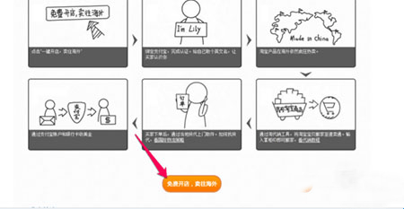 2、在这里看到免费开店介绍,继续点击“免费开店,卖往海外”按钮;