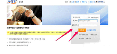7、输入账户和密码,单击“登录”按钮,登录自己的支付宝帐号;