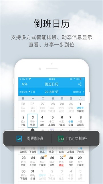 1、该应用能够浏览到倒班日历,实时查阅日历中显示的排版安排;