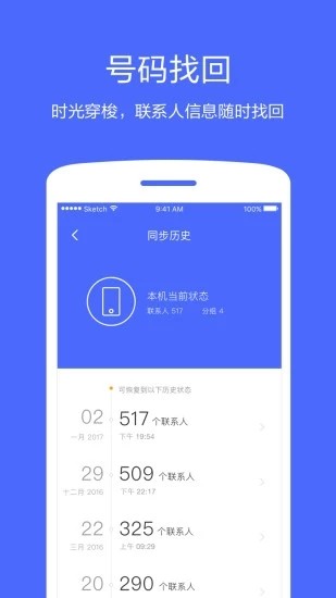 1、智能“增量同步”技术,支持联系人同步,随时随地同步和恢复。也可到云端查看和管理通讯录信息。