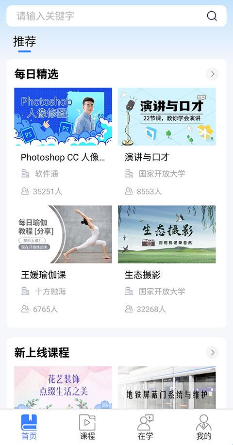 软件为大家收录了50万门课程,包括了三百多所高校,里面覆盖了多种不同技术职业的课程,让大家在闲暇的时候能够不断提高多方面的技能,通过线上就能够掌握更多课程的知识,国家开放大学终身教育平台app还有全面的习题演练,让大家巩固知识,提供公开课,视频讲解,直播等形式,让你轻松学习。