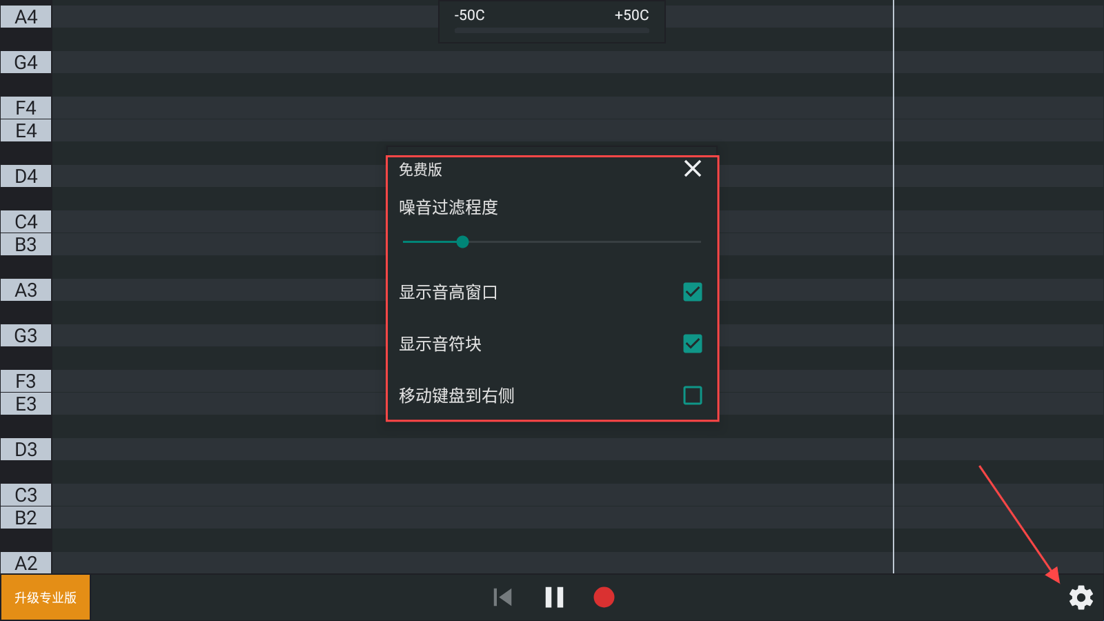 2、监控您唱的音符。