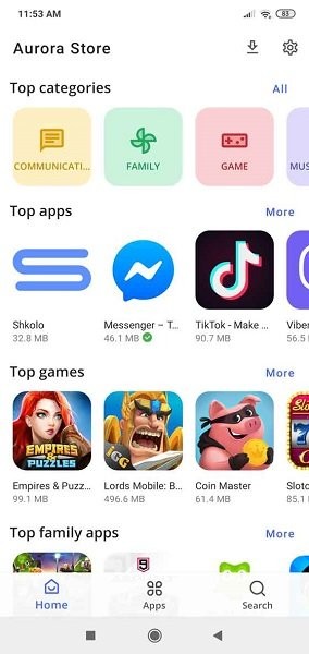 2、使用aurora商店,可以轻松绕过应用商店登录认证,而直接进入应用程序。