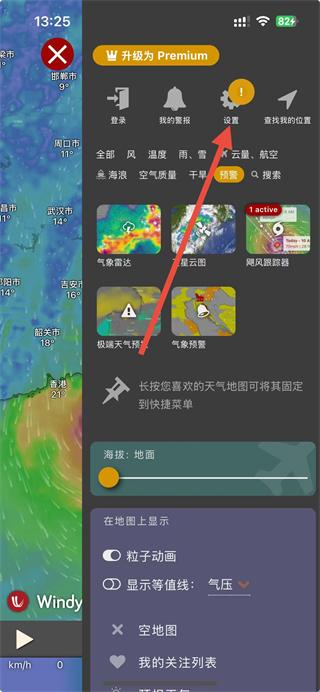 3、风警报:设置 windalert并通过推送通知了解风警报。