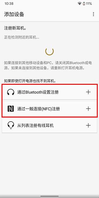2、如果此时打开电源软件检测不到耳机,那么我们选择通过Buletooth设置注册或者下方的一触连接(需要手机支持NFC)手动链接耳机。