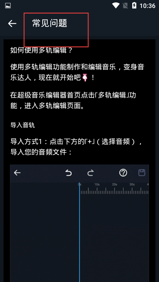 3、在制作过程中若遇到问题,点击创作界面的问号图标,进入常见问题页面,这里有针对多轨编辑等功能的详细解答,参考这些内容能更好地掌握软件操作。
