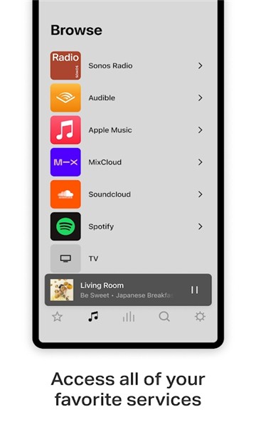 sonos s2是一款非常好用的手机音箱软件,拥有丰富强大的影音播放功能,操作方便简单,可以直接在线收听全球各地的实时广播节目和海量优质音乐曲库,音质优秀,软件轻松控制系统,全部音乐资源免费提供给用户使用,喜欢的小伙伴们快来下载试试吧!