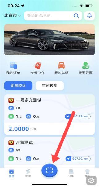 2、以远近距离的方式为你显示所有充电站的位置,便于你自己选择。