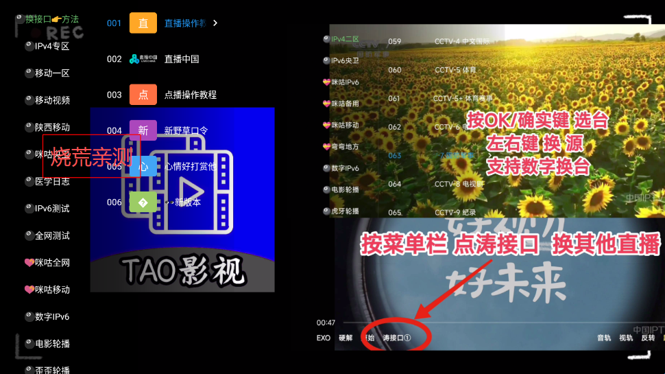 2、点击左上角文字可以切换播放源