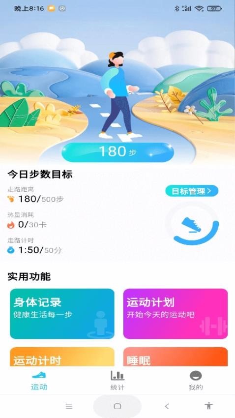 每天计步健康宝这款app是一个让用户每日记录自己走路步数的软件,让用户自己看见每天运动了多少,看见自己每天健康生活的状态,同时软件中还有很多功能,还可以身体记录、运动计划、运动计时、睡眠等,对自己运动健身感兴趣的宝子快来体验吧,更多功能等你探索。