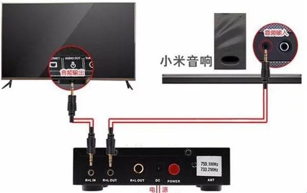 1、先把电视以前接音响的线拔掉,在电视上找到音频输出孔,拿一根1对1的线,一端接电视,一端接话筒主机输入