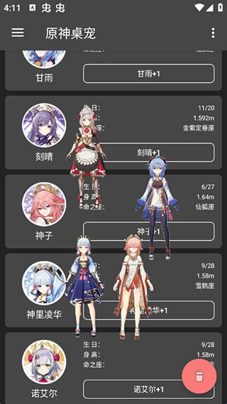 2、软件内有6个不同的原神游戏角色,供玩家们可以来进行挑选与设定使用的;