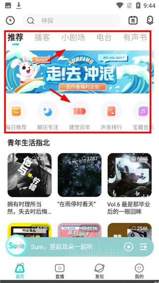 1、一个年轻人专属的生活解压音频平台,集聚播客、电台、广播短剧、有声书等声音内容,让所有Z时代小伙伴通过Sure感受声音营地的奇妙能力。
