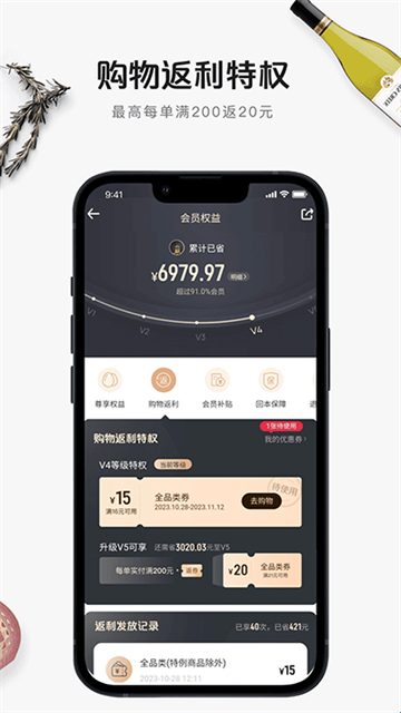 2、购物返利:购物返利特权,最高每单满200返20元