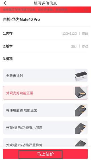 5、填好机型情况,功能是否正常等后,点击马上估价