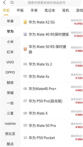 3、选择对应的手机品牌和机型,小编这里以华为mate40 pro+为例