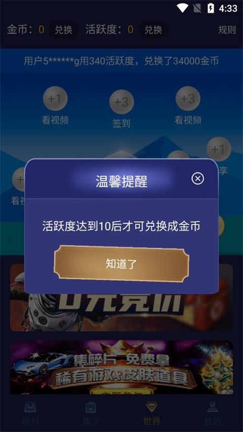 5、还有一个就是使用活跃度来兑换金币,活跃度达到10后才能兑换金币哦!