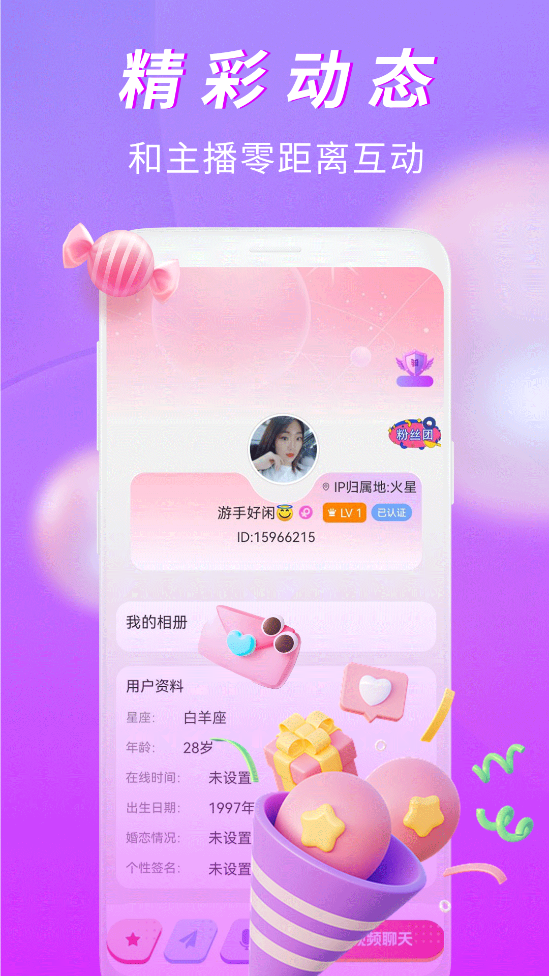 1、用户可以创建个性化的个人资料,展示自己的兴趣、爱好和照片,吸引更多社交伙伴;