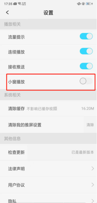 4、在这个页面还可以设置小窗播放哦。