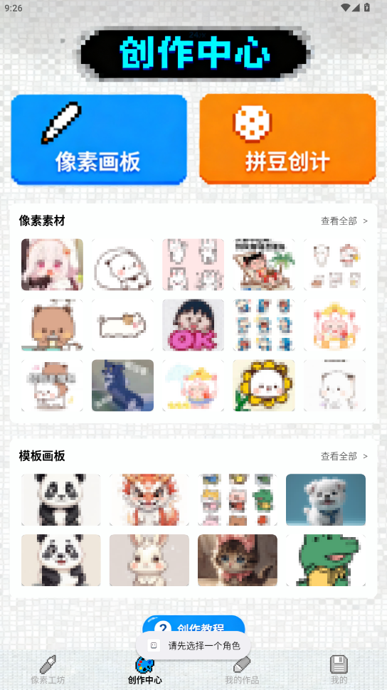 1、在烧荒软件园下载Aseprite像素画app,同意软件政策。点击选择一个[绘画角色]。