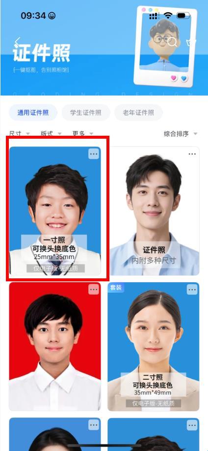 3、在证件照界面选择合适的证件照尺寸,上传你需要换底色的照片。