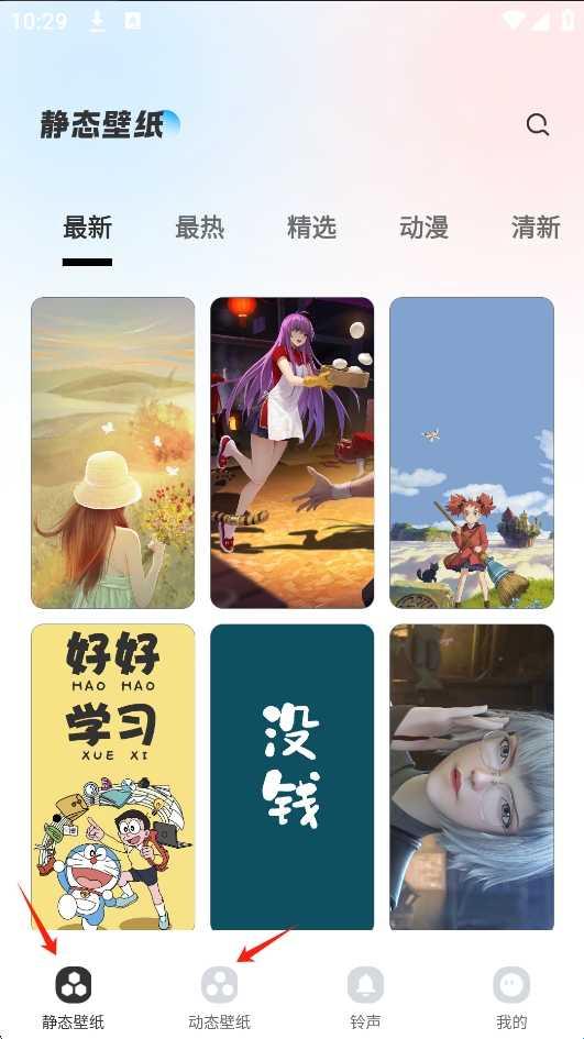 1、进入软件,静态壁纸、动态壁纸应有尽有。