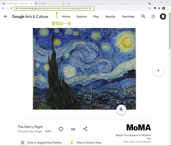 1、双击打开谷歌艺术与文化软件里找到需要下载的图片页面,并复制该页面的链接;