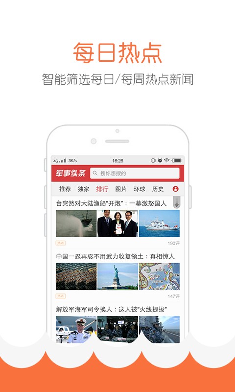2、即时新闻资讯:军事头条致力于打造拥有最新的军事资讯、最多的战略知识、最开放的互动平台,让您足不出户知天下事。