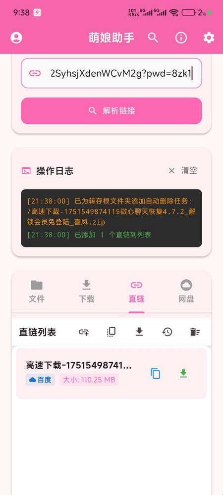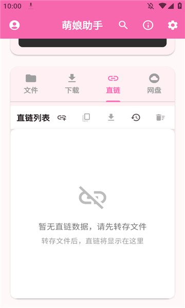 萌娘助手是一款实用的网盘工具,可以自由导入不同类型的网盘链接,兼容性高,一键解析,轻松识别其中的内容,在线下载,非常的方便,还有搜索功能可以使用,快速找到所需的资源,支持下载视频,文档,音乐等文件,处理过程非常快,界面干净没有任何的广告,满足用户多元化的需求。