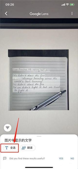 4、即可全选照片中的文字进行动作可直接复制文字,朗读,翻译;