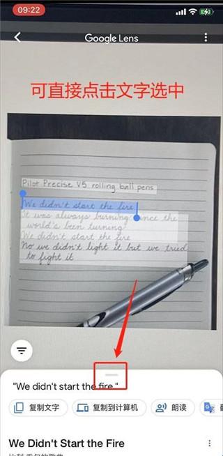 5、点击屏幕中的「文字」即可自选部分文字,点击「展开」可进行动作