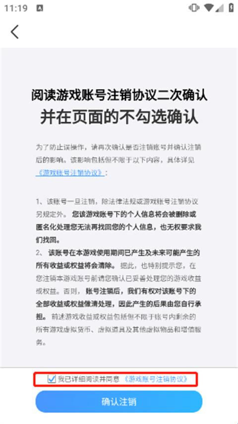 3、勾选上注销协议后点击下一步,二次确定注销协议后,点击“确定注销”;
