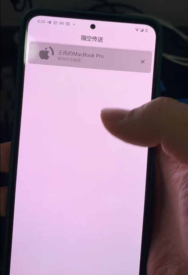 4、最后只需要等着文件,文件就会自动传输了。并且在mac上会直接调用官方接口,出现隔空投送的信息哦~