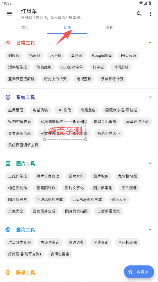 风车工具箱app解锁VIP版又叫红风车,是一款免费的多功能工具箱app,内置功能齐全,分区详细,都是即点即用的,无需重复下载软件喔!还可以输入关键词搜索获取你想要的工具,总体来说使用体验还是非常不错的,有需要的朋友们快来下载试试吧!