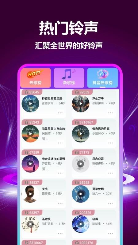 2、铃声榜单:以后就能够轻松的获取各种铃声榜单了,不同的手机铃声都可以快速的找到;