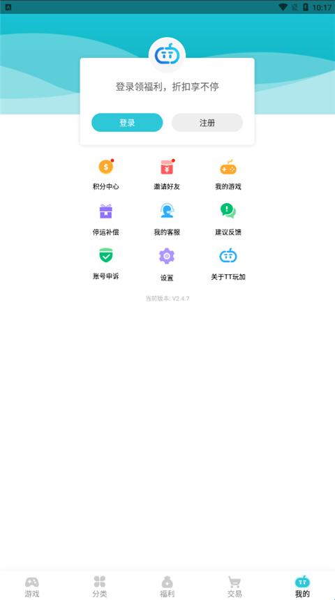 5、点击我的,可以登录app,查看积分,已下载的游戏等内容;