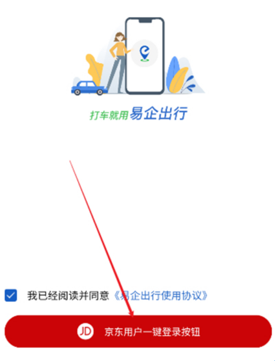 2、会跳到易企出行界面,然后点击京东用户一键登录按钮