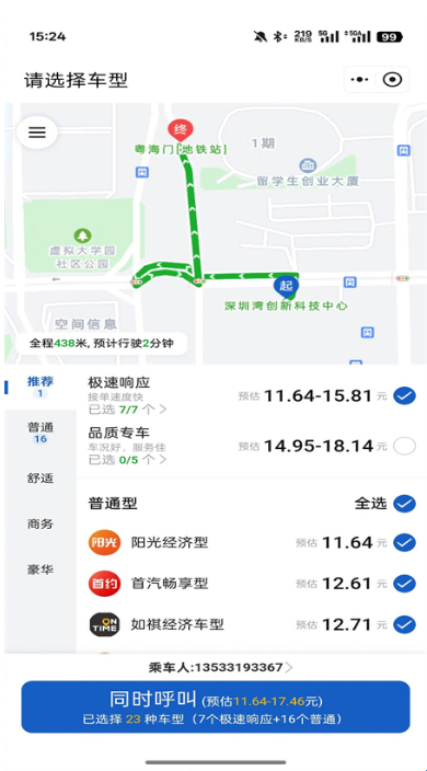 4、根据个人需求,您可以选择不同的车型来享受服务。