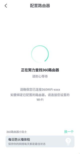 6、完成以上操作以后,软件会自动查找360路由器,请耐心等待。此过程中请确保您已连接360WiFi-xxxx,如要绑定已配置的路由器,请连接您设置的Wi-Fi。