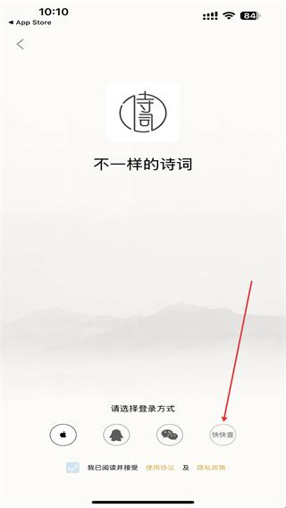 3、进入登录选择的界面内,选择并点击快快查的按钮。