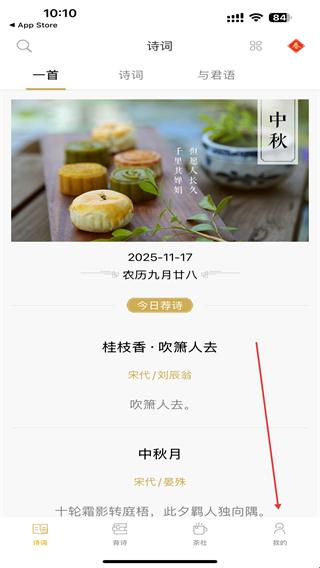 1、打开古诗词典app,进入点击导航栏中我的按钮。